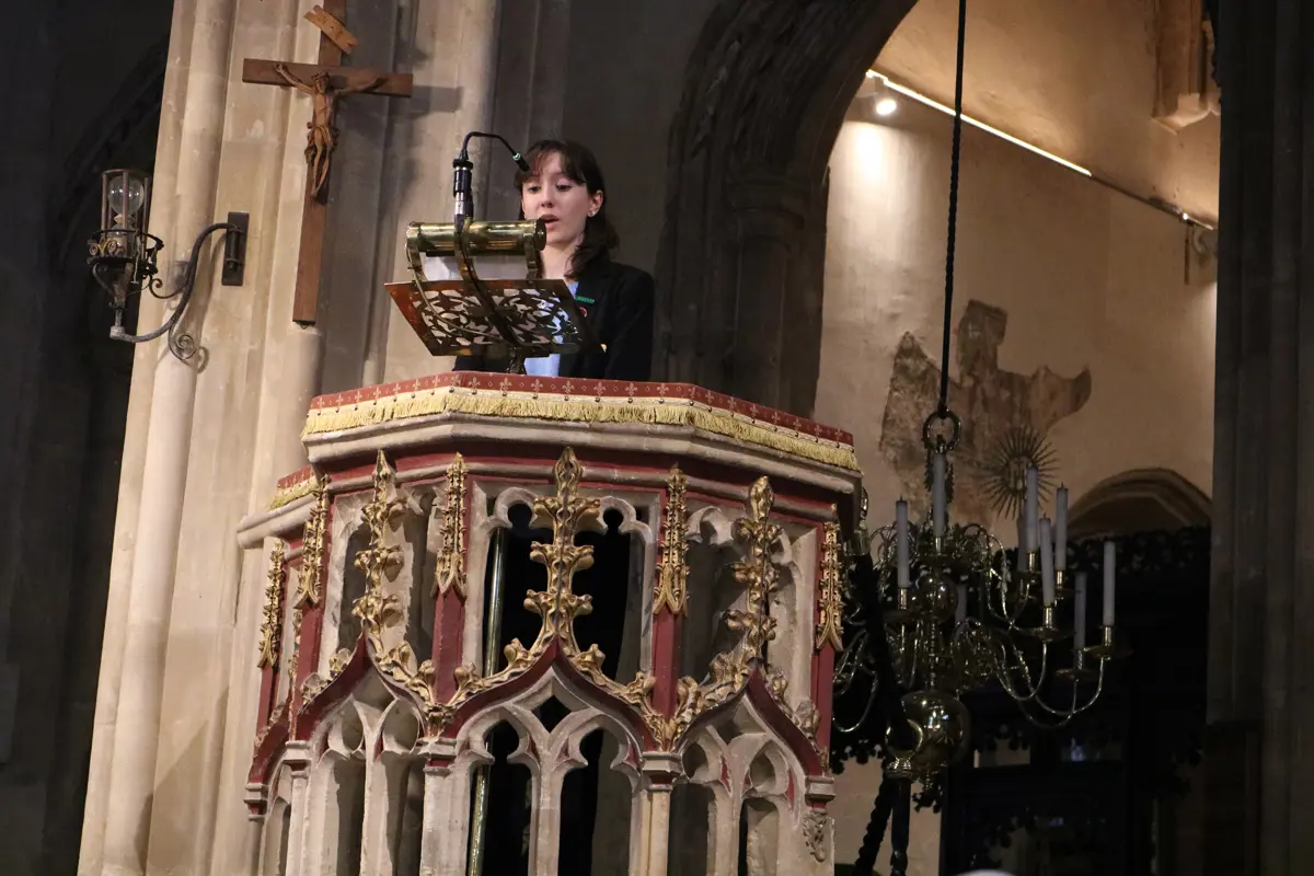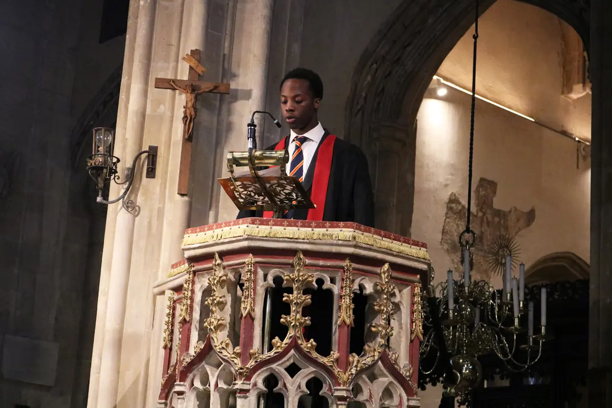 It included readings by pupils Isabella A, Tristan B and Saskia D as well as traditional carols sung by the congregation, accompanied by organ and brass ensemble, including: 'Once in royal David's City' and 'O little town of Bethlehem', 'O Come, all ye Faithful' and ‘Hark! The herald angels sing’. There were also prayers led by our Chapel Prefects, Ayomide A and Hannah D.